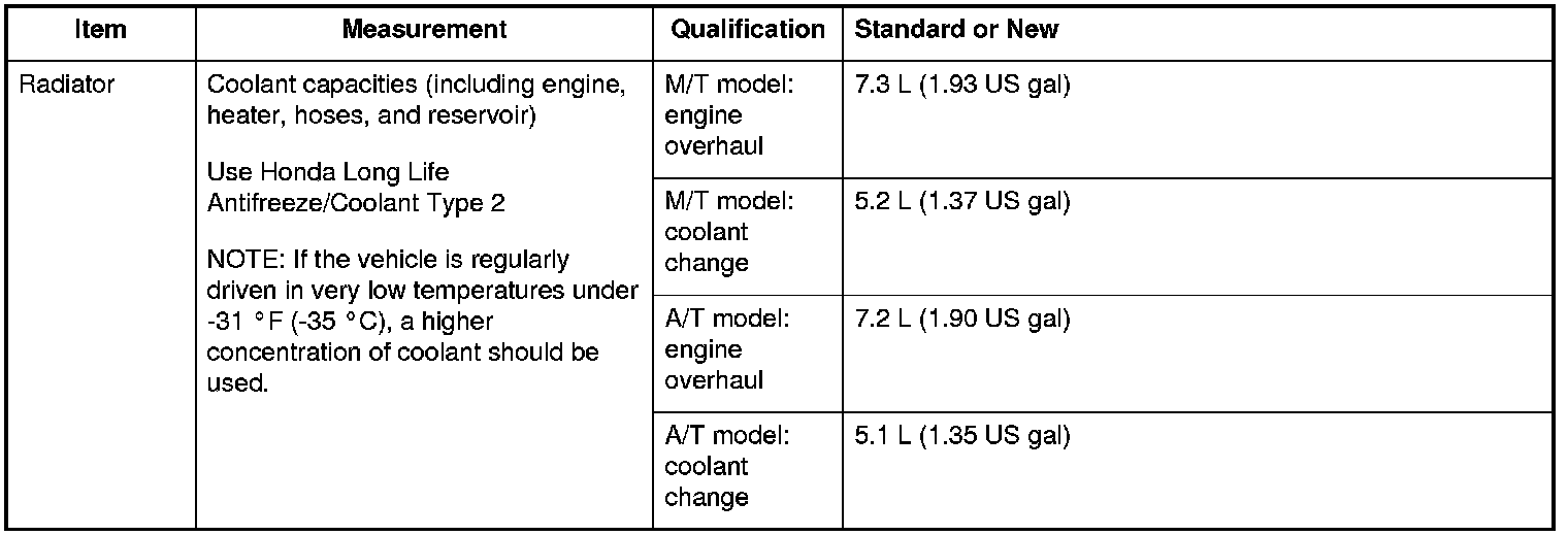 Radiator Specifications