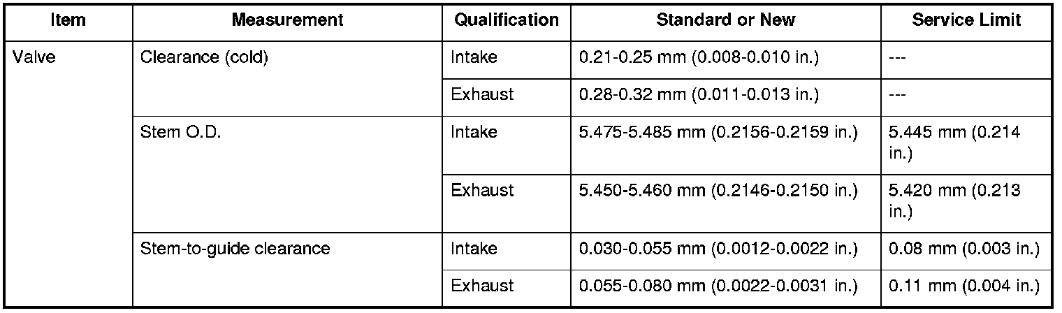 Valve Specifications
