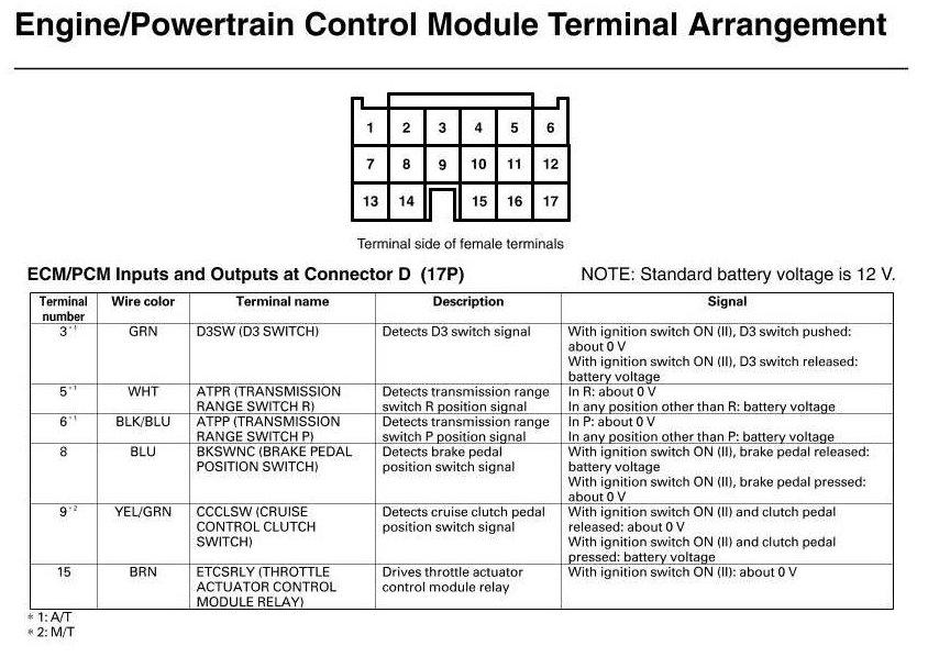ECM/PCM Inputs And Outputs At Connector D