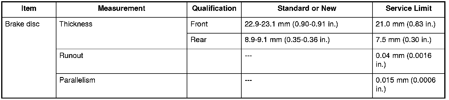 Brake Disc Specifications