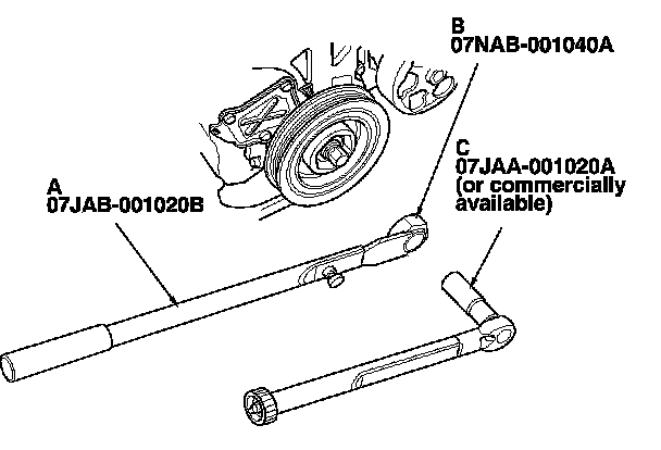 If the pulley bolt or crankshaft are new, tighten the bolt to 177 N-m (18.0 kgf-m, 130 lbf-ft), then remove the bolt and tighten it to 49 N-m (5.0 kgf-m, 36 lbf-ft).