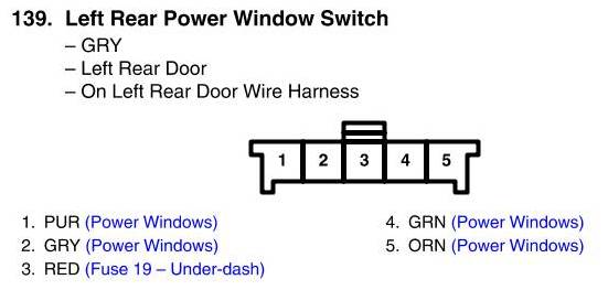 Left Rear Power Window Switch Connector View
