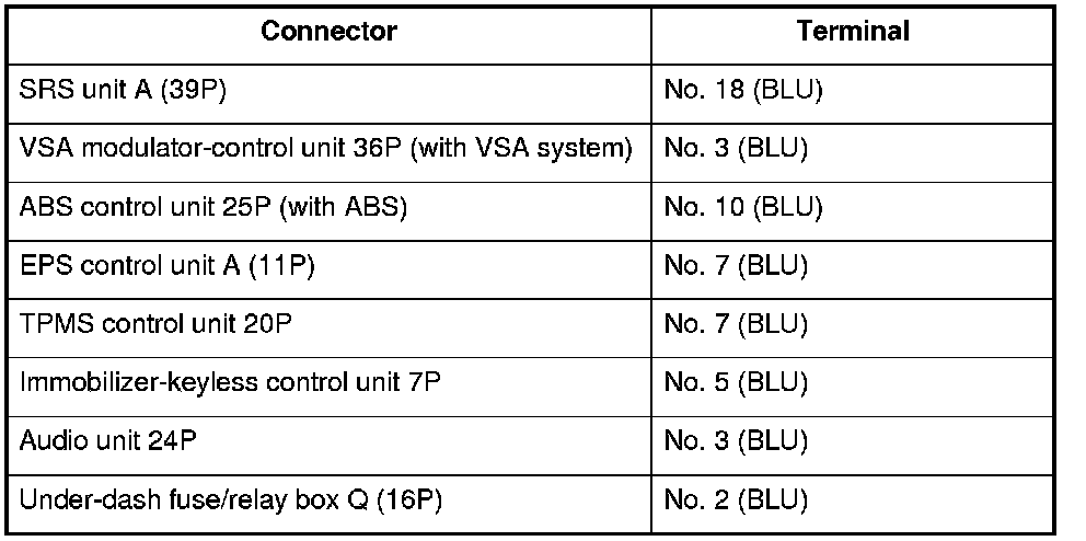 NO - Repair short in the wire between the DLC (K-line) and the ABS modulator-control unit (with ABS), the VSA modulator-control unit (with VSA system), the SRS unit, the EPS control unit, the TPMS control unit, the immobilizer-keyless control unit, the audio unit, the under-dash fuse/relay box, or the ECM/PCM.