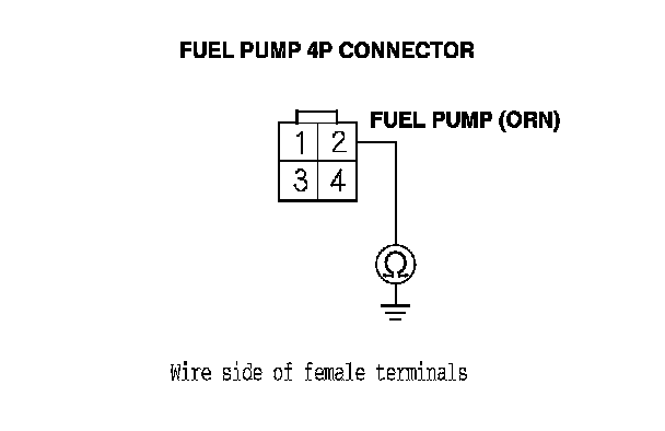 56. Check for continuity between fuel pump 4P connector terminal No. 2 and body ground.