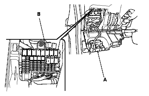69. Open the fuse access panel (A), then remove the PGM-FI main relay 1 (B) from the under-dash fuse/relay box.