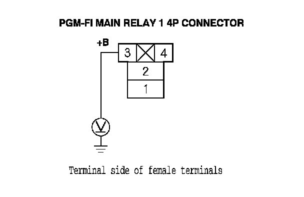 65. Measure the voltage between PGM-FI main relay 1 4P connector terminal No. 3 and body ground.