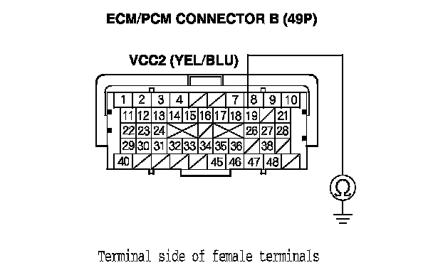 78. Check for continuity between ECM/PCM connector terminal B19 and body ground.