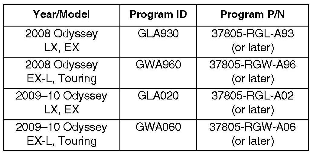 Home >> Honda >> 2009 >> Odyssey V6-3.5L >> Repair and Diagnosis >> Powertrain Management >> Computers and Control Systems >> Relays and Modules - Computers and Control Systems >> Engine Control Module >> Technical Service Bulletins >> Customer Interest >> Engine Controls - MIL ON/DTC P0128 Is Set