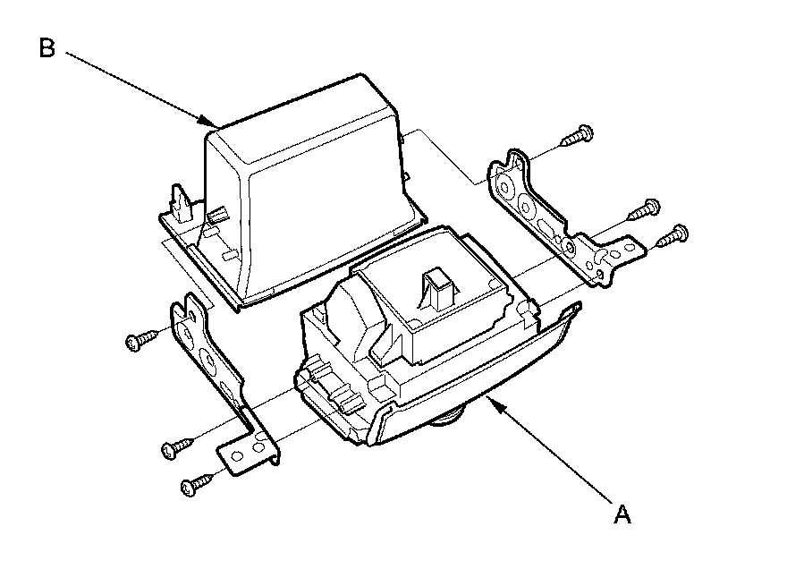 2. Remove the screws and brackets, then separate the navigation switch panel (A) and the center pocket (B).