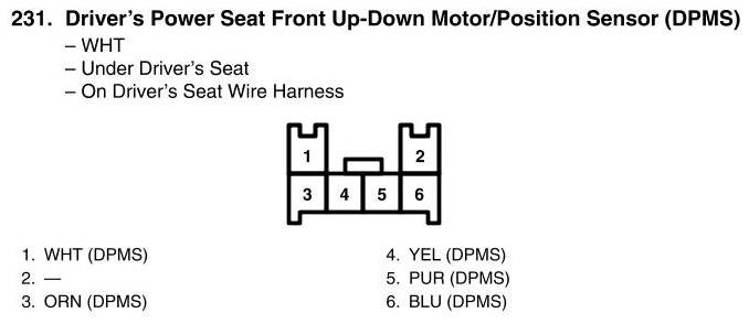 Driver's Power Seat Front Up-Down Motor/Position Sensor Connector View (DPMS)