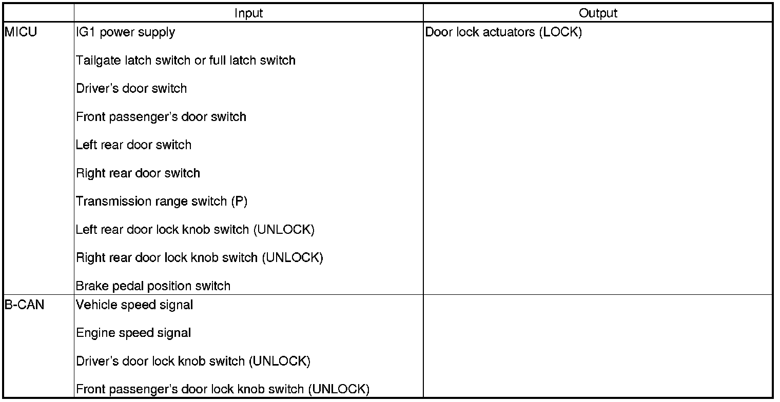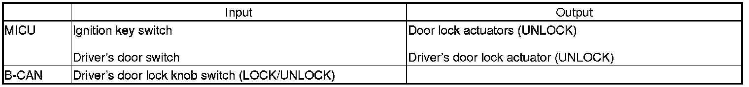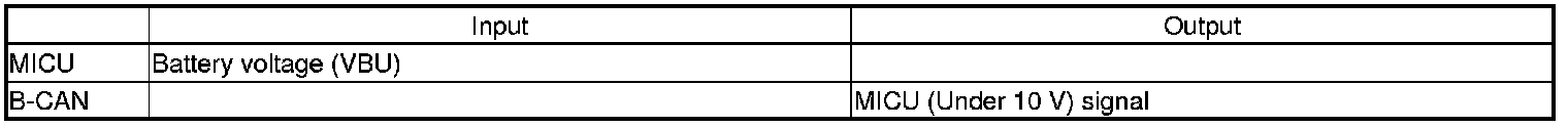When any of the data from the B-CAN circuit cannot be received within a specified time, or an unusual combination of data is recognized, the MICU enters the software fail-safe mode. The data that cannot be received is assigned a pre-programmed value.