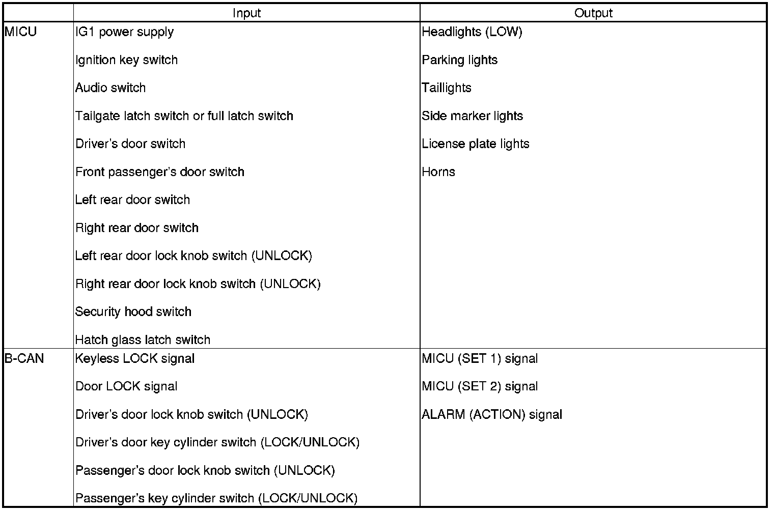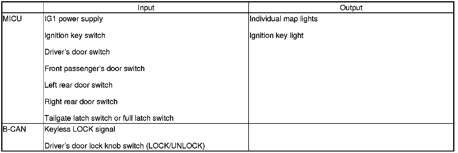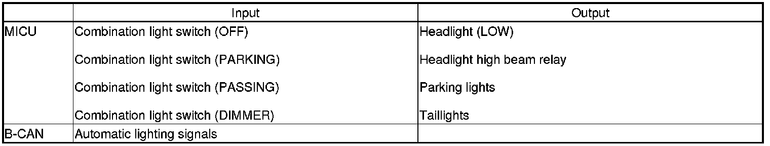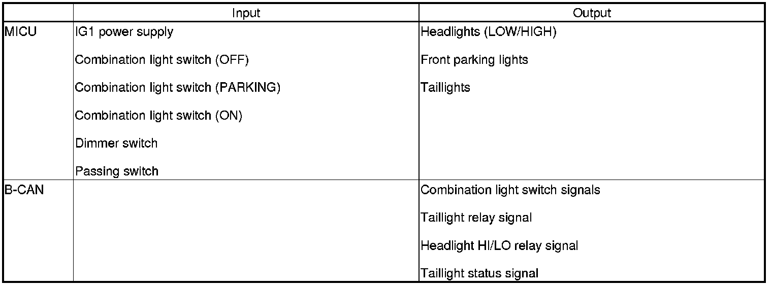 The MICU controls the automatic lighting system based on inputs from each switch and B-CAN data.