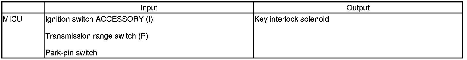 The MICU controls the key interlock solenoid based on the ignition switch ACCESSORY (I) position, the transmission range switch (P), and the park-pin switch inputs.