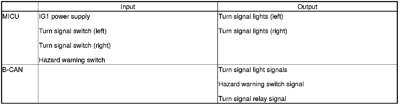The MICU controls the turn signal lights based on the IG1 and B-CAN data.