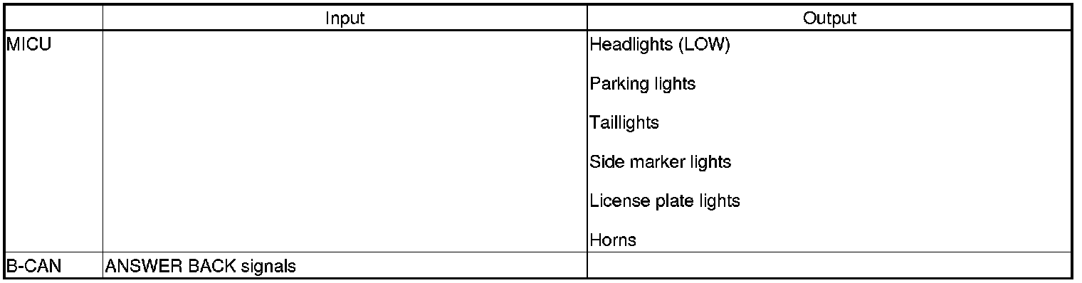 The MICU controls the lighting system and horns based on inputs from each switch and B-CAN data.
