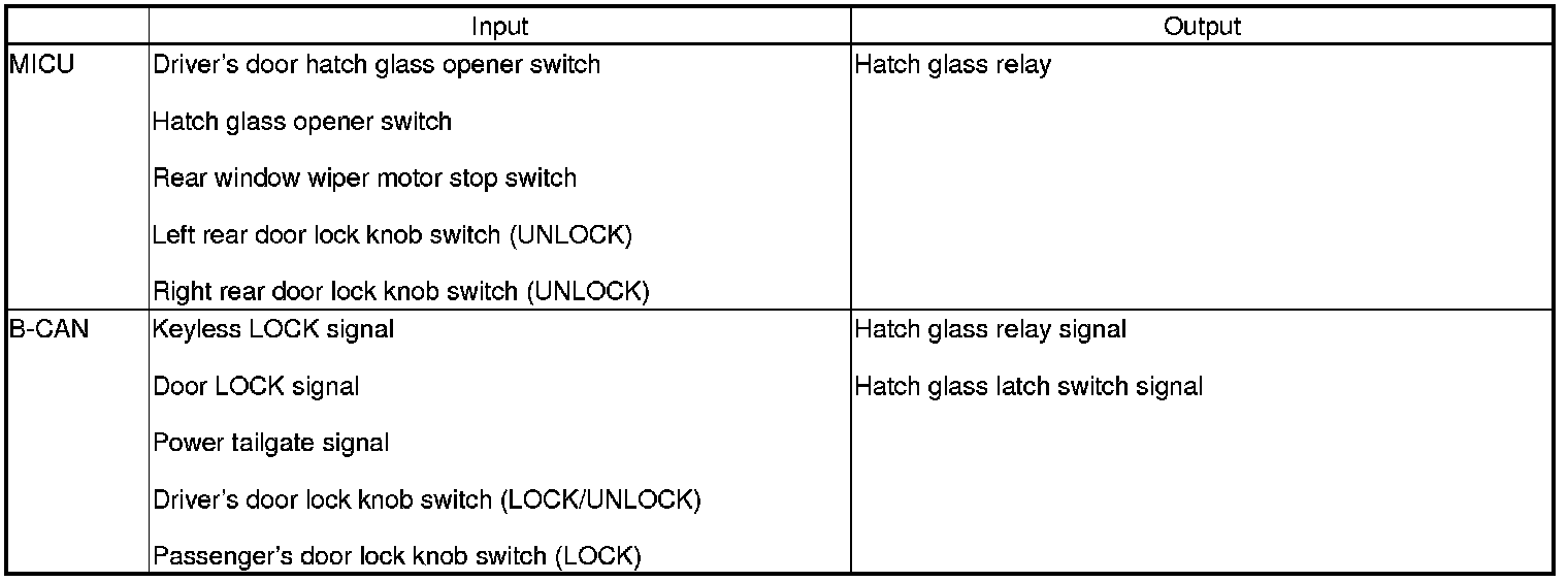 The MICU controls the hatch glass opener based on the inputs from each switch and B-CAN data.