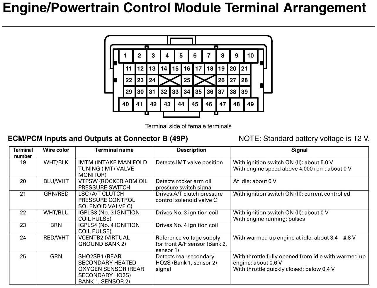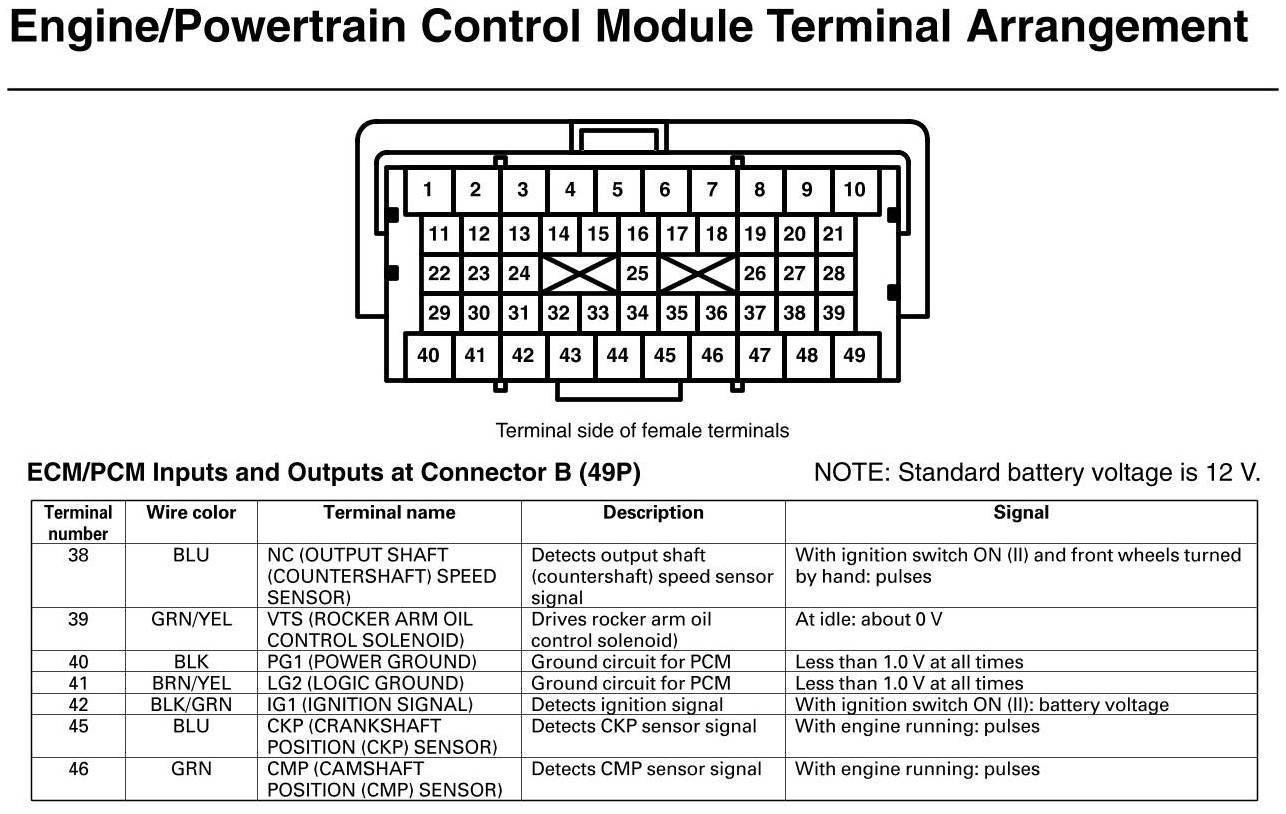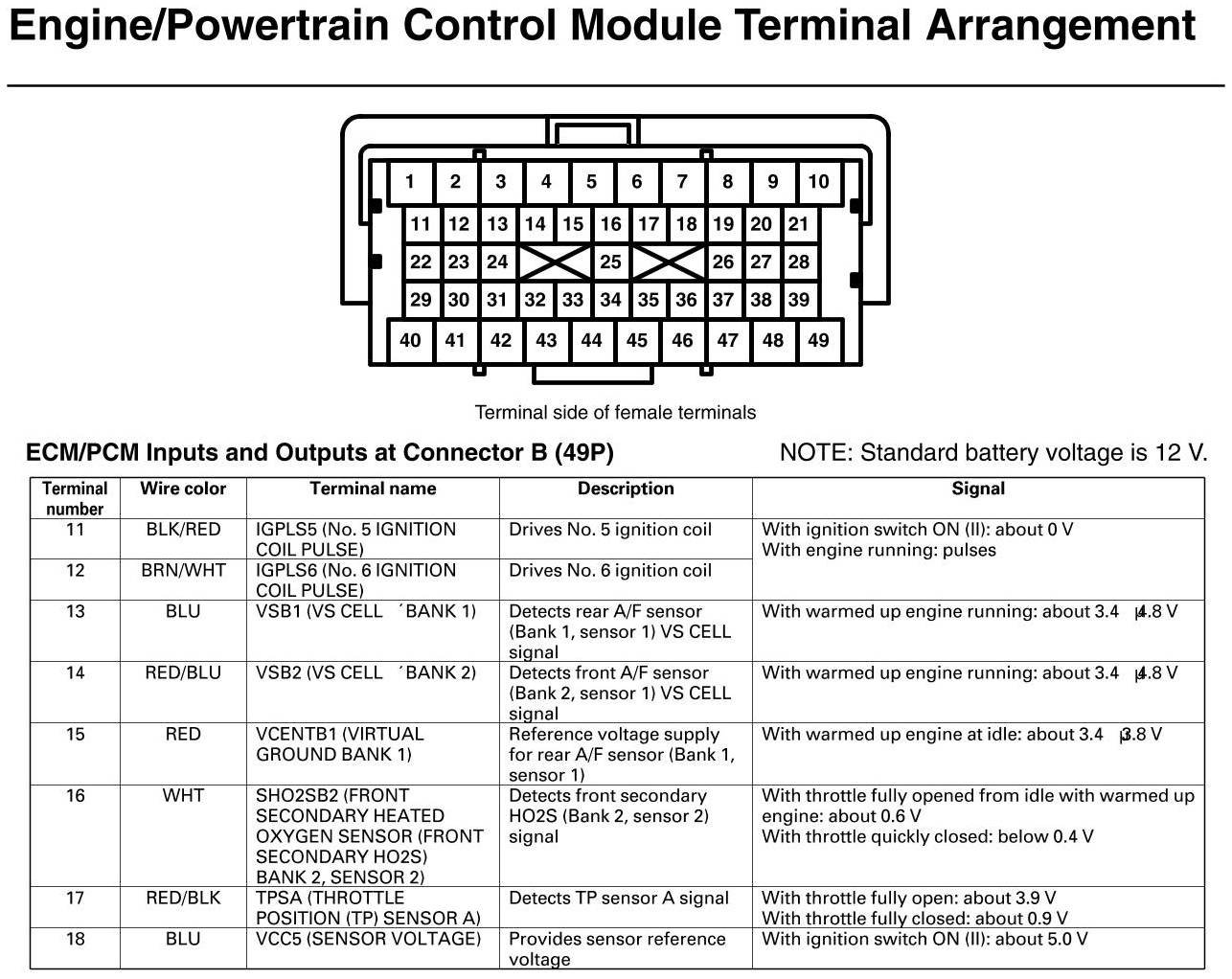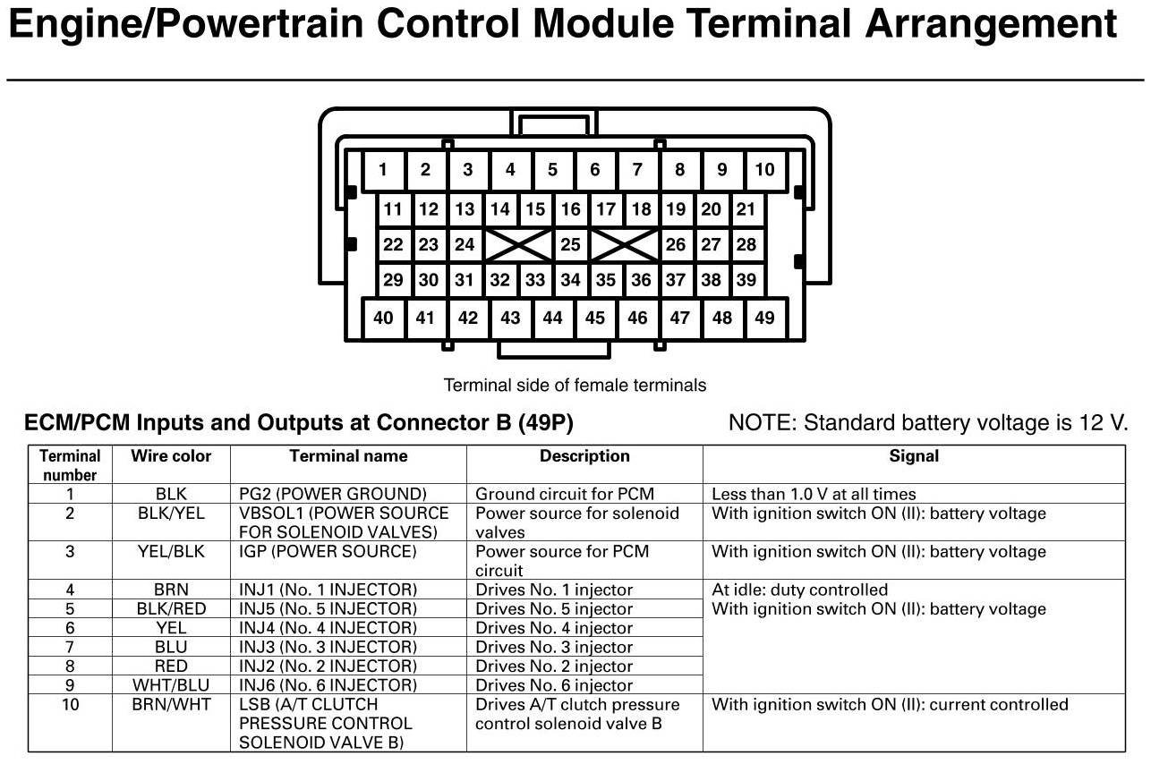 PCM Inputs And Outputs At Connector B