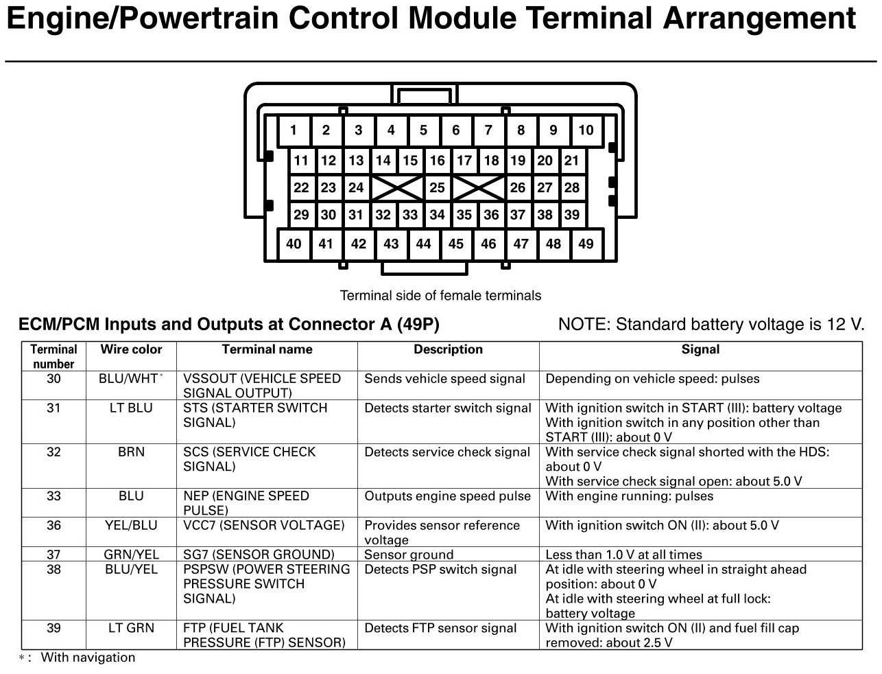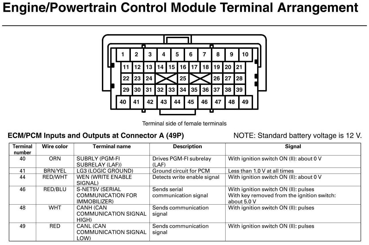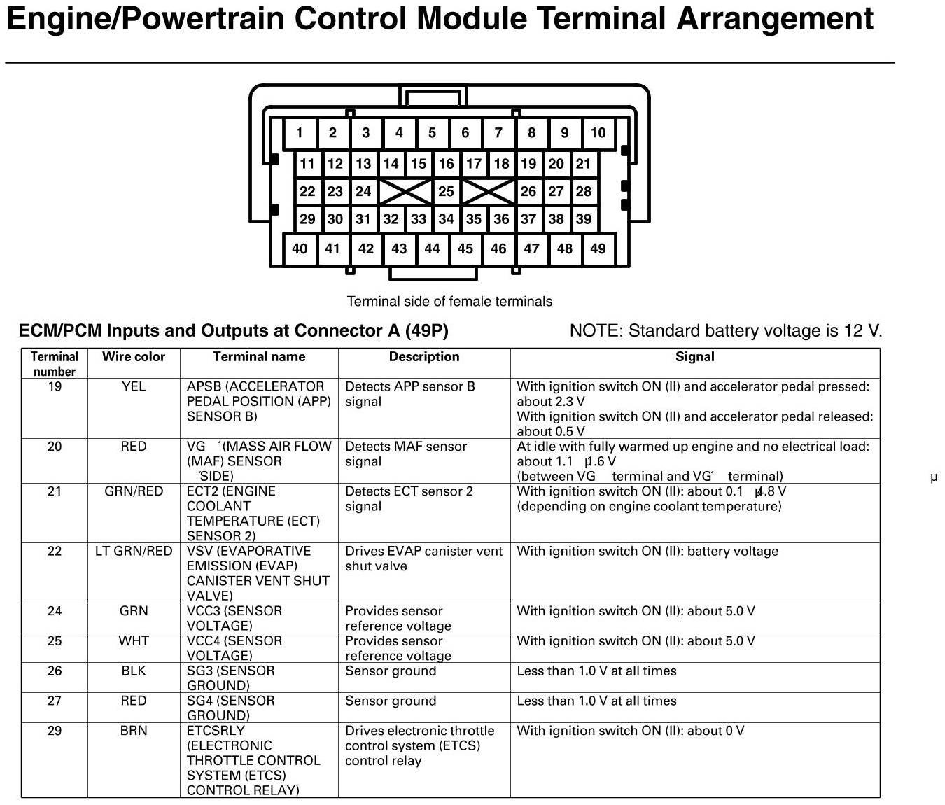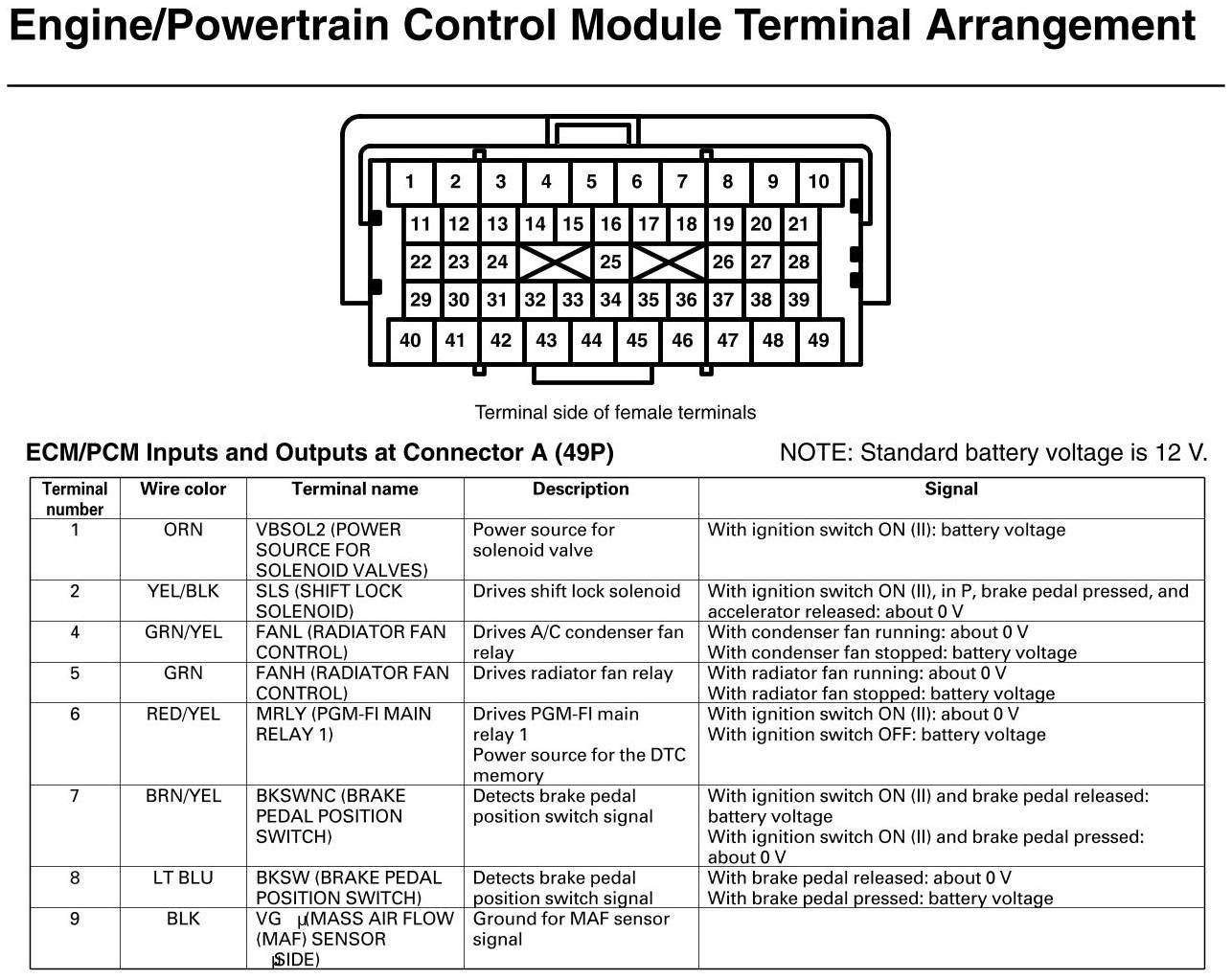 PCM Inputs And Outputs At Connector A