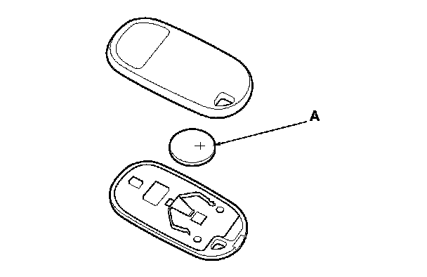 3. Replace the transmitter battery (A) with a new one, and try to lock and unlock the doors with the transmitter by pressing the lock or unlock button five or six times.