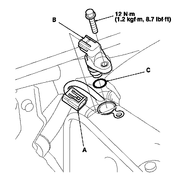 3. Install the parts in the reverse order of removal with a new O-ring (C).