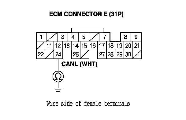 34. Check for continuity between ECM connector terminal E24 and body ground.