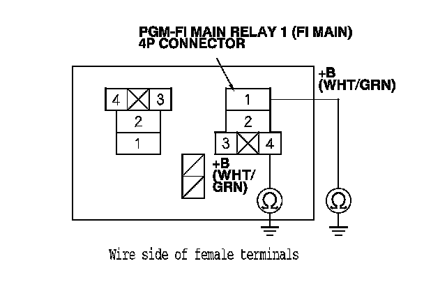 72. Measure the voltage between PGM-FI main relay 1 (FI MAIN) 4P connector terminal No. 1 and body ground.