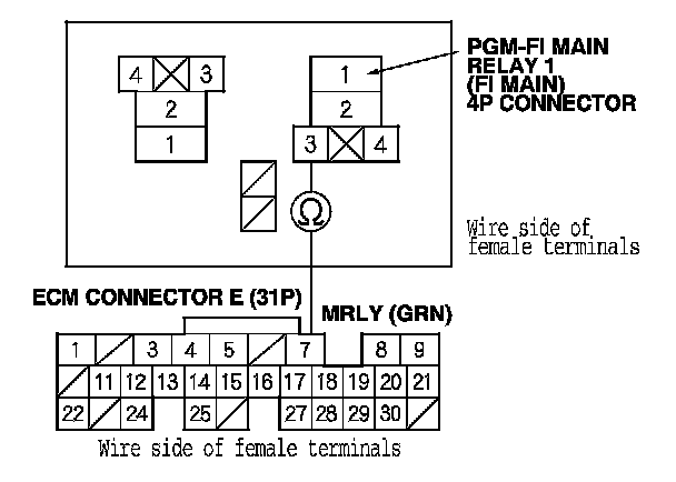 NO - Repair open in the wire between PGM-FI main relay 1 (FI MAIN) and the ECM (E7).