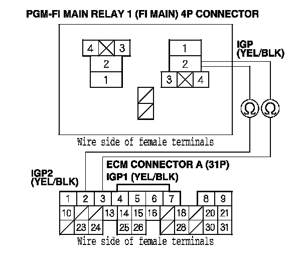 NO - Repair open in the wire between PGM-FI main relay 1 (FI MAIN) and the ECM (A2, A3).