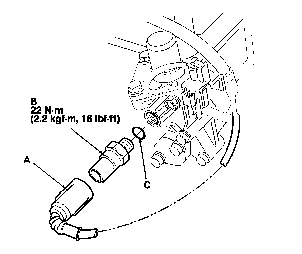 3. Install the parts in the reverse order of removal with a new O-ring (C).