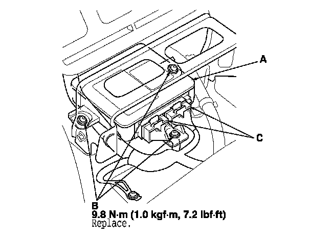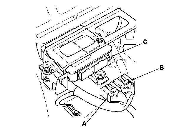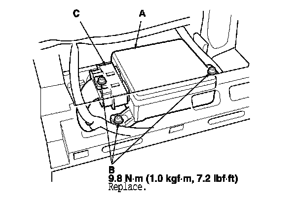 1. Install the SRS unit (A) with new TORX bolts (B), then connect the connectors (C) to the SRS unit; push them into position until they clicks.