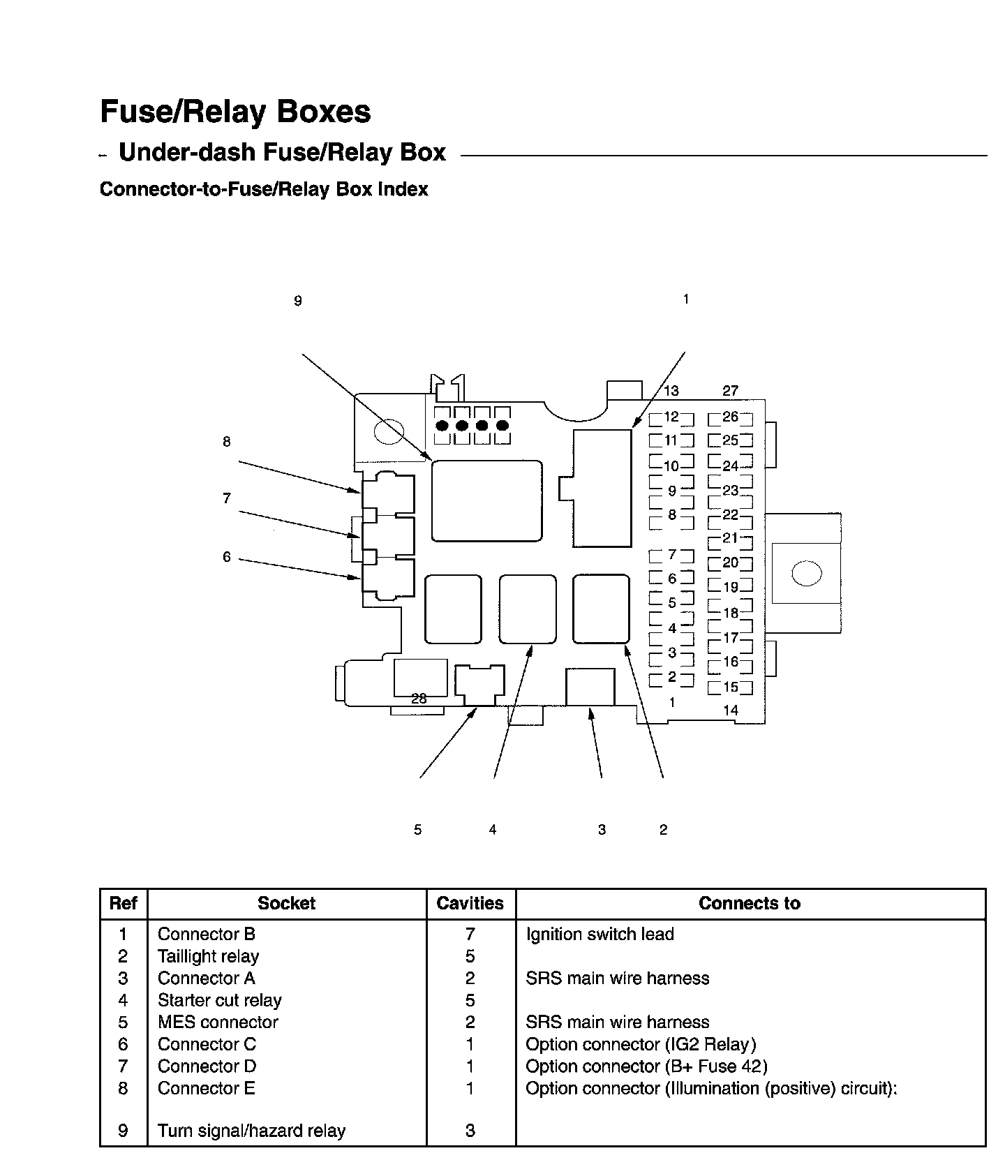 Under-Dash Fuse/Relay Box - Connector-to-Fuse/Relay Box Index