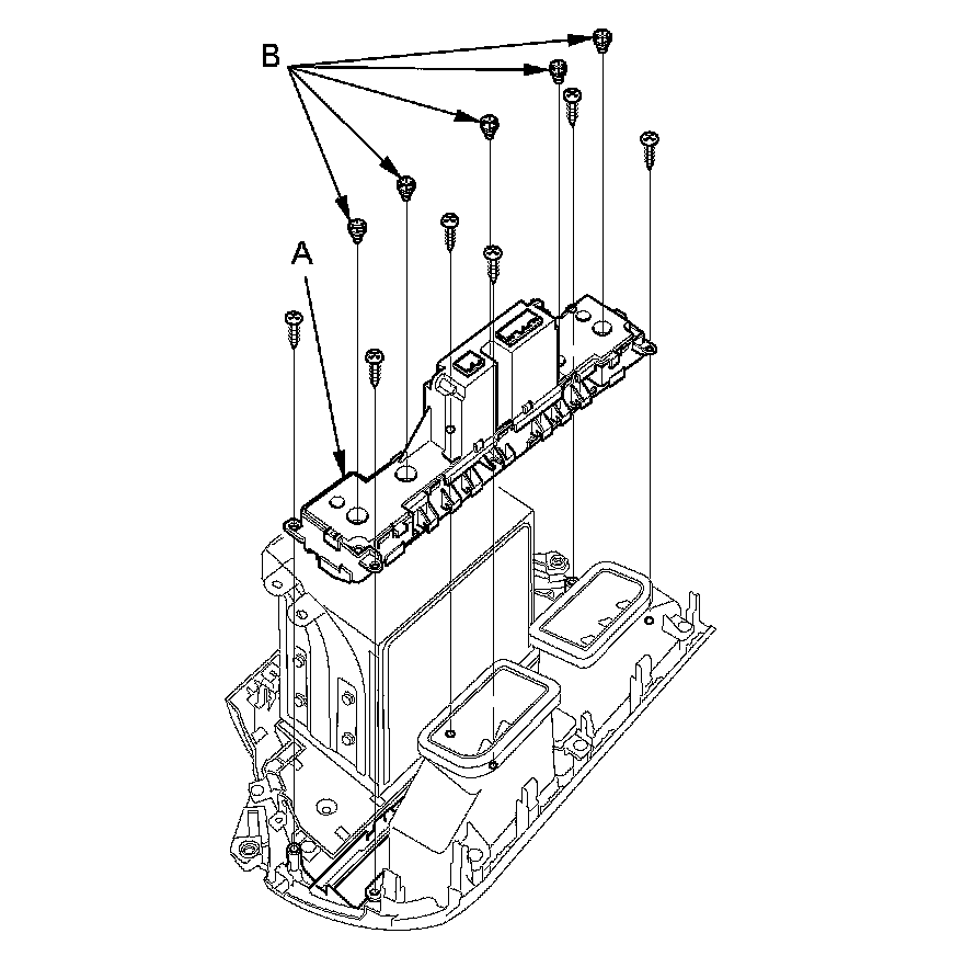 2. Remove the self-tapping screws and the climate control unit (A). If necessary, replace the bulbs (B).