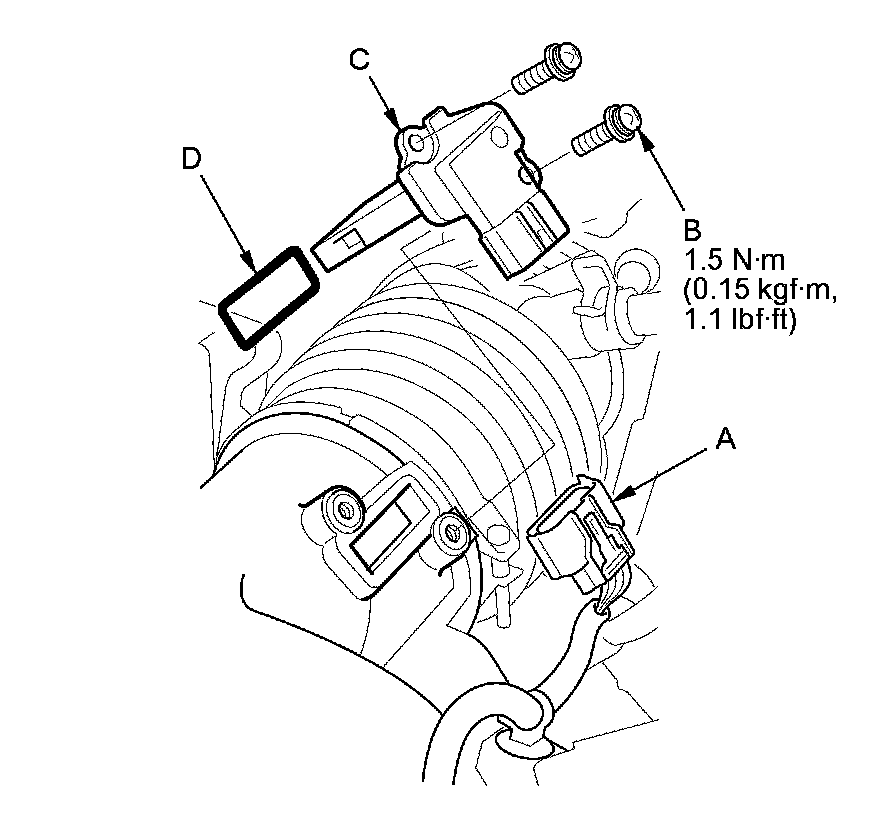 4. Install the parts in the reverse order of removal with a new O-ring (D).