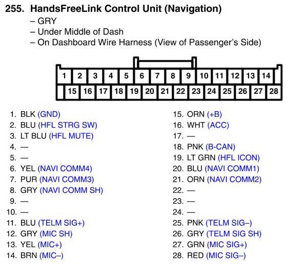 HandsFreeLink Control Unit Connector View (Navigation)