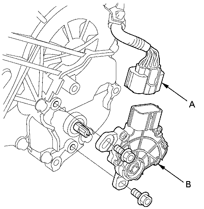 4. Disconnect the transmission range switch connector (A), then remove the transmission range switch (B).