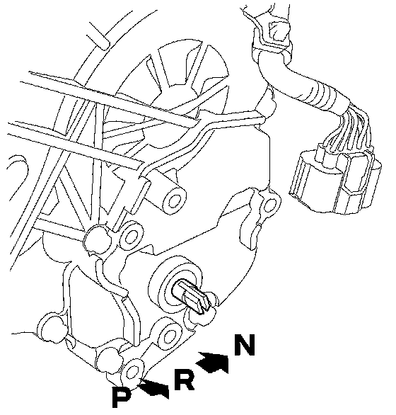 5. Make sure the selector control shaft is in the N position. If necessary, move the shift lever from P to N.