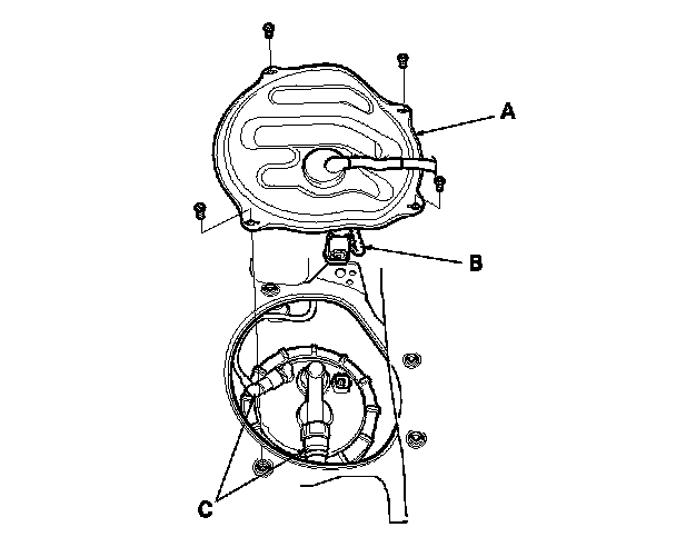 6. Disconnect the quick-connect fittings (C) from the fuel tank unit.