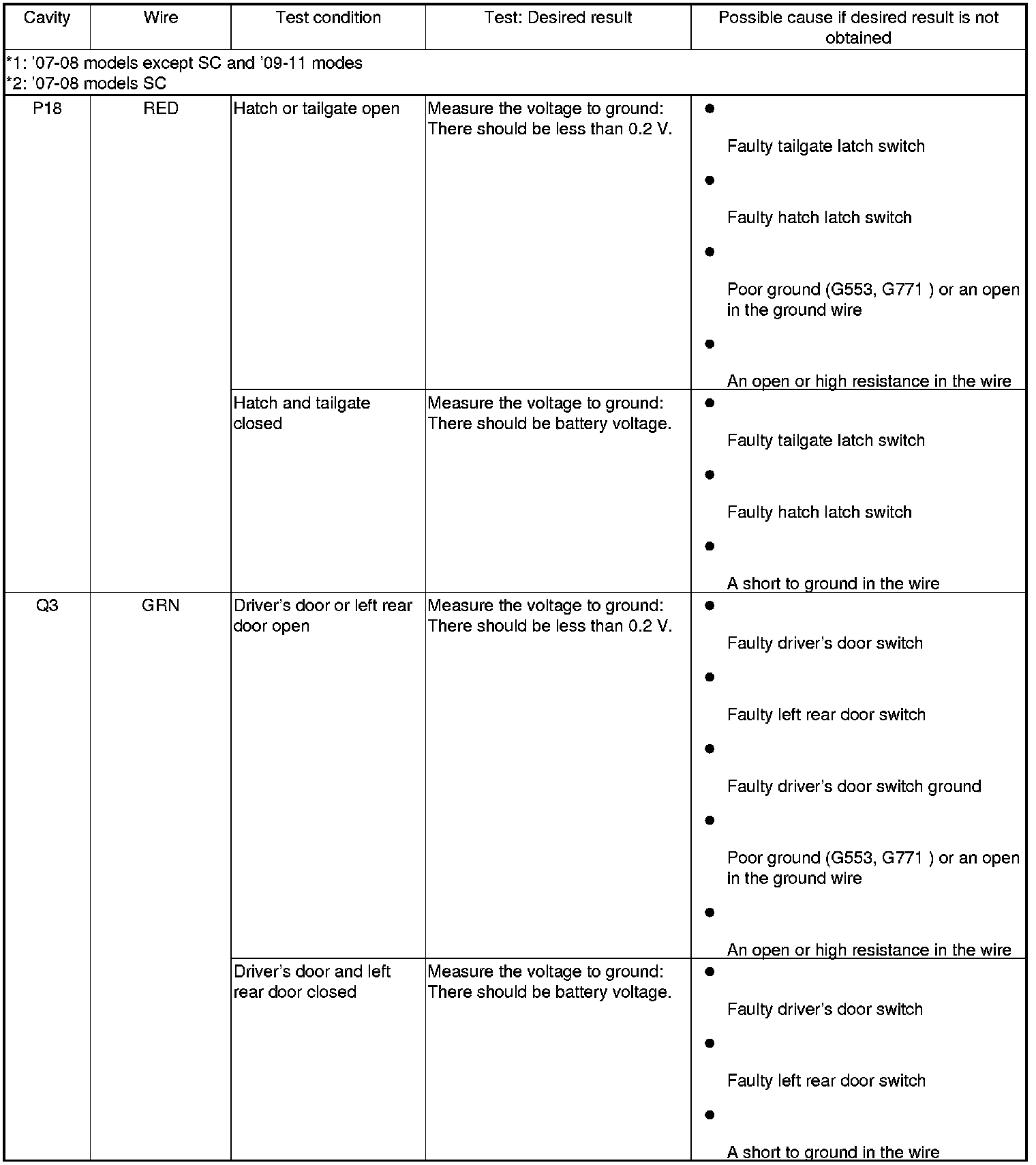 Keyless/Power Door Locks (Multiplex Control Unit) Input Test