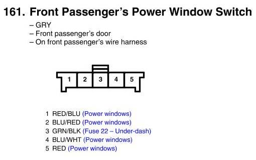 Front Passenger's Power Window Switch Connector View