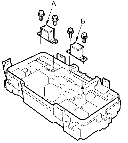 4. Remove the under-hood fuse/relay box lower cover (B) from the fuse/relay box.