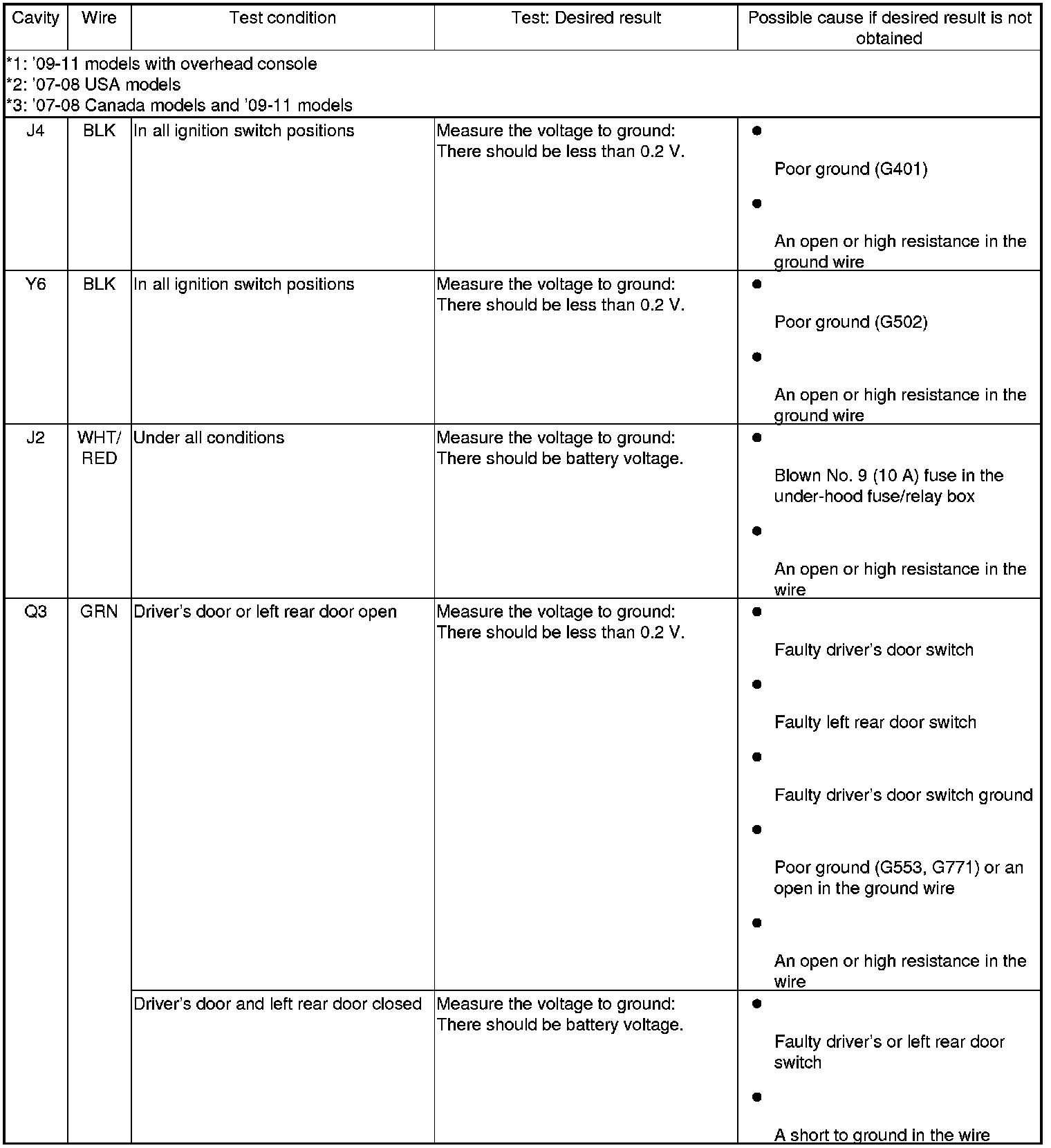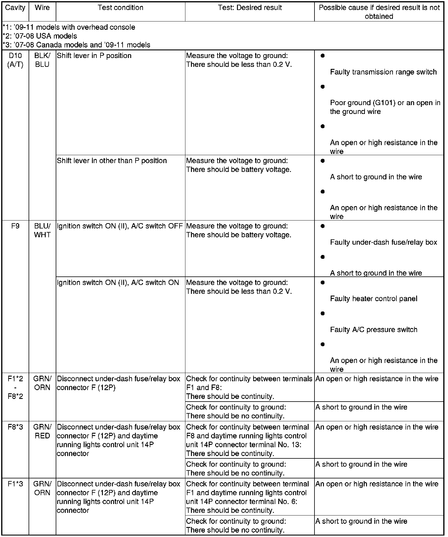 4. Reconnect the connectors to the under-dash fuse/relay box, and do the following input tests:
