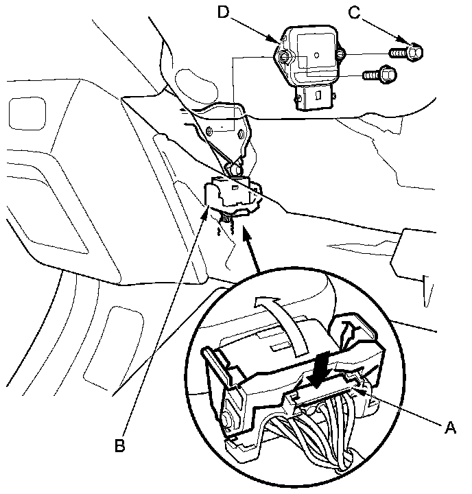 2. Remove the bolts (C), and the throttle actuator control module (D).