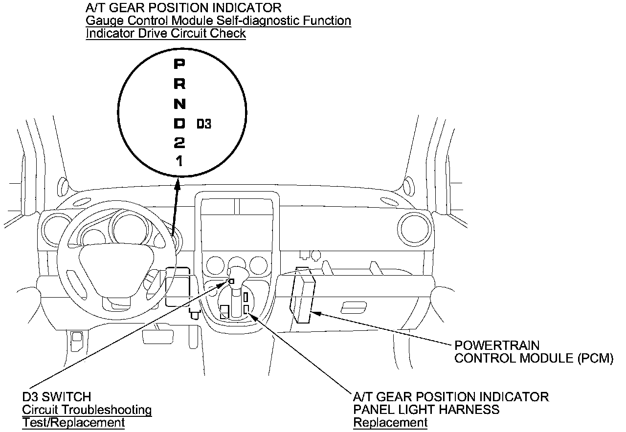 A/T Gear Position Indicator Component Location Index