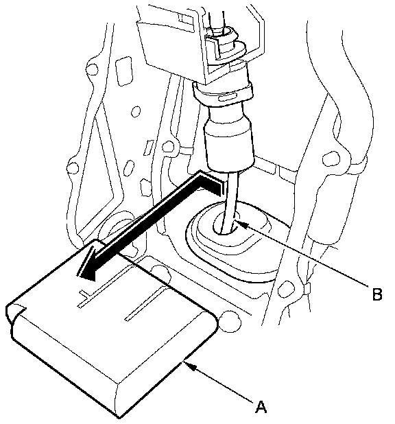7. Separate the shift cable end (A) from the shift cable end holder (B).