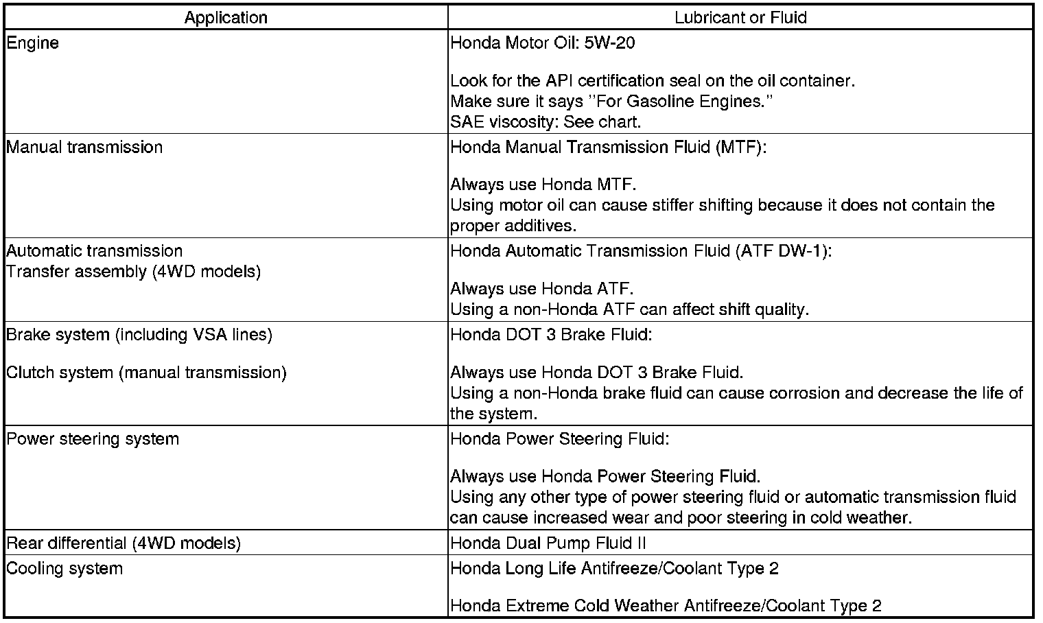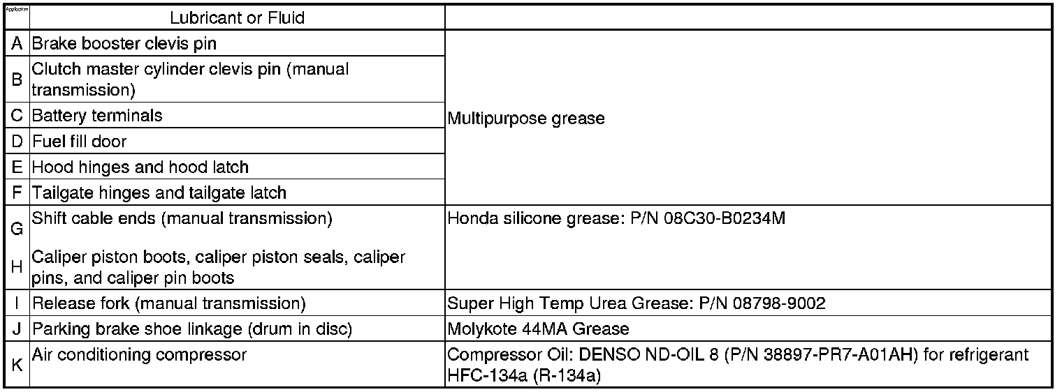 Home >> Honda >> 2010 >> Element 2WD L4-2.4L >> Repair and Diagnosis >> Specifications >> Fluid Type Specifications >> Fluids