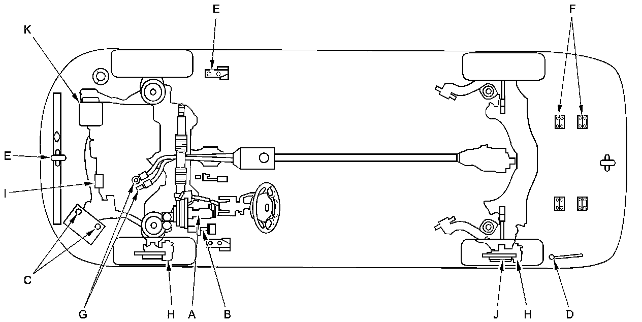 - Lubricate the following areas using the recommended lubricants and fluids.