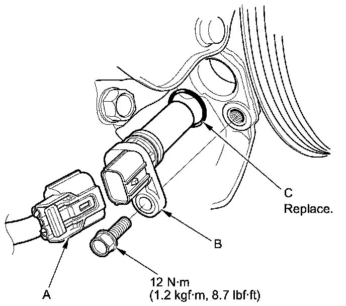 3. Install the parts in the reverse order of removal with a new O-ring (C) coated with clean engine oil.