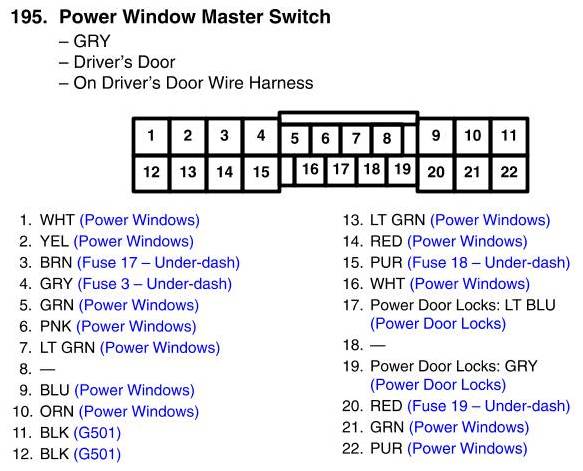 Power Window Master Switch Connector View