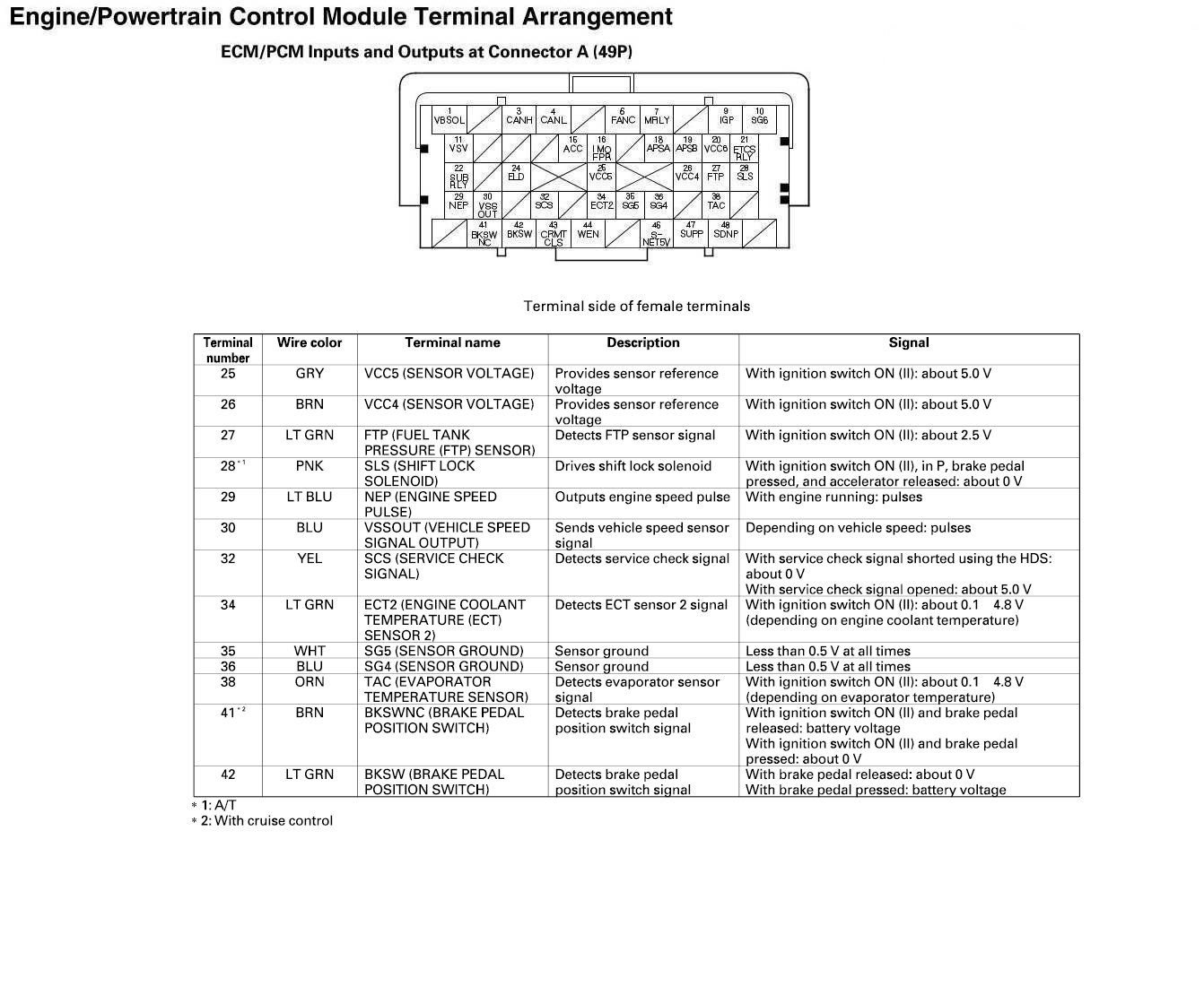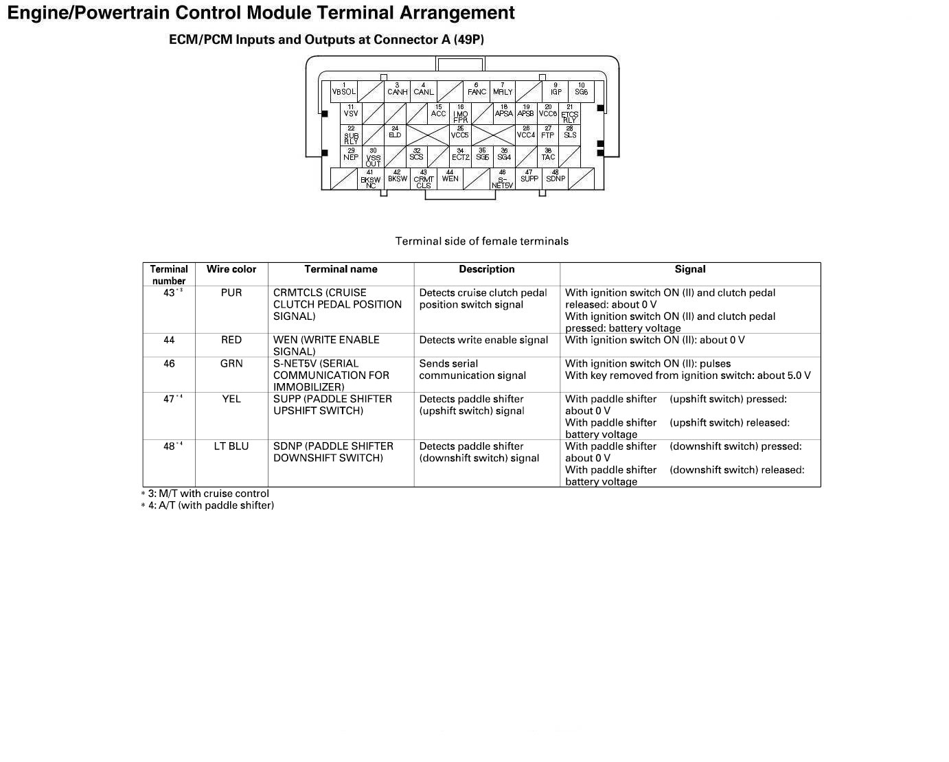 ECM/PCM Inputs And Outputs At Connector A