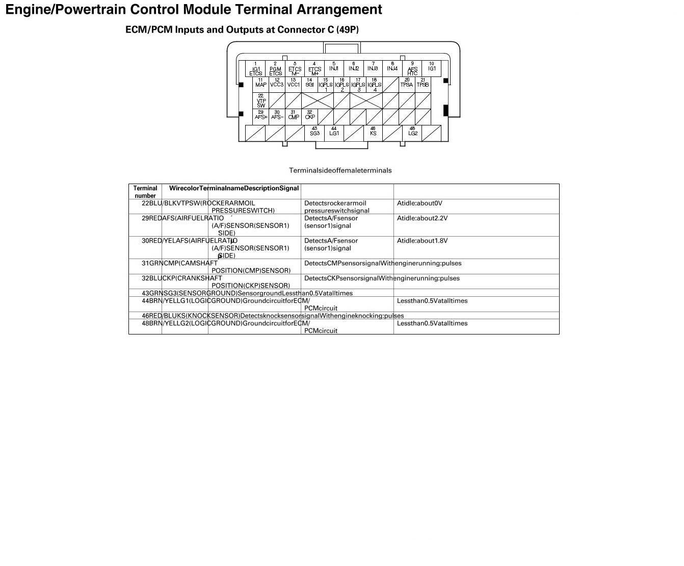 ECM/PCM Inputs And Outputs At Connector C